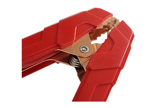 しっかりとした金属製クランプは、大型車のターミナルもしっかりと掴むことができます。ワニ口の歯も大型化し、確実な接続を実現しました。さらに、クランプ部分は消耗品であるため、簡単に取り外しができる構造を採用しています。