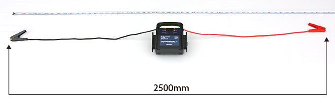 収納されているケールブルは広げると2500mmになります。車種やバッテリー位置を問わず柔軟に対応できます。エンジンルーム奥やトランク搭載バッテリーにも無理なく接続可能です。