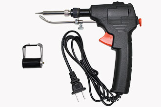 トリガーを引くことではんだを自動的に送り出す事ができます。指先の感覚で出る量を調節できるので電動タイプよりも細かい作業に向いています。また片手で作業ができるので空いた手で部品を支えたり回路図を開いたりでき大変便利です。